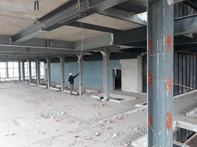 Hiernaast is onderzocht of de betonvloeren zouden kunnen losgezaagd en direct hergebruikt. Dit bleek helaas niet mogelijk omdat er vervuiling in de vloeren zat.
