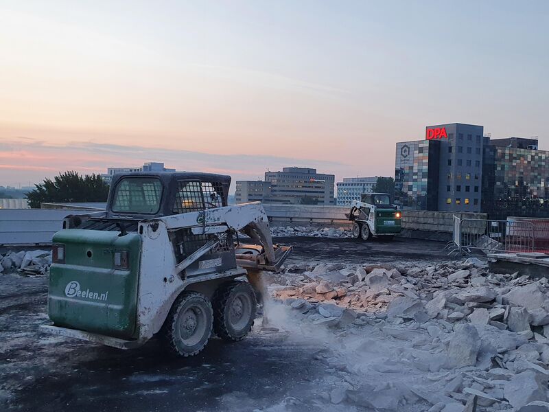 - totaal 32 pallets vol tapijttegels zijn gedemonteerd voor direct hergebruik.